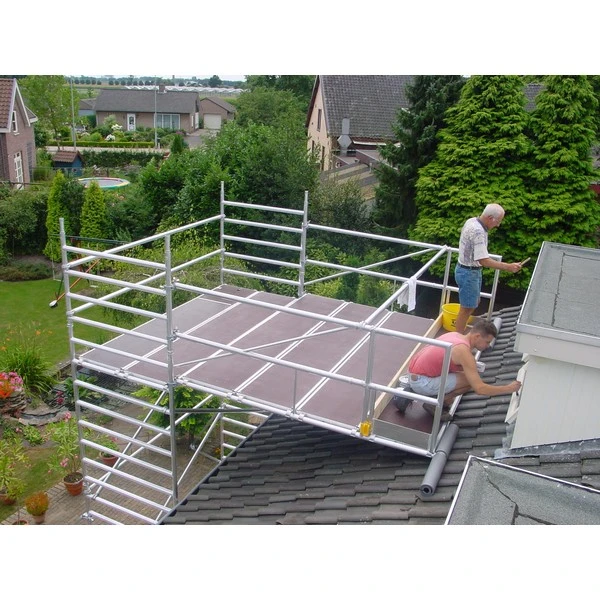 Deze aluminium steiger-uitbreiding zorgt ervoor dat er veilig en comfortabel op hoogte gewerkt kan worden aan dakkapellen en andere dakopbouwen.