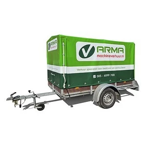 Een aanhanger met huif ideaal voor het vervoeren van meubelen en andere materialen. Aanhangwagen is voorzien van huif zodat goederen droog en schoon vervoerd kunnen worden.