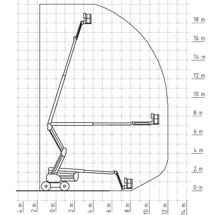 Knikarm hoogwerker 20 m reikwijdte 12 m ruw terrein huren