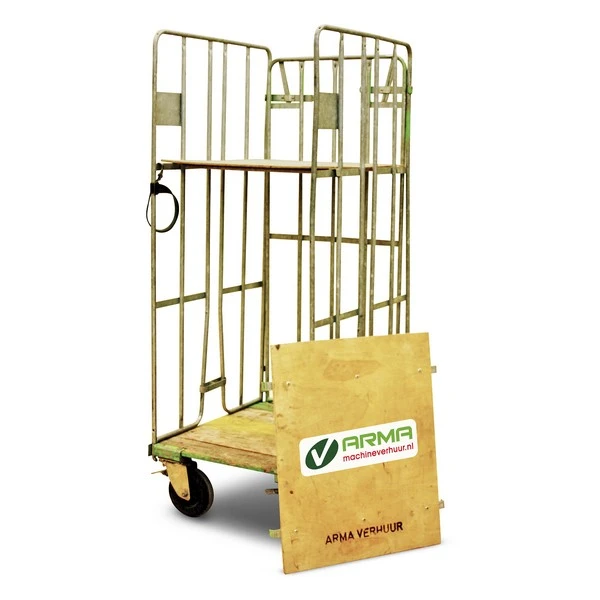 Rolcontainer met 2 zijrekken en 1 achterrek huren