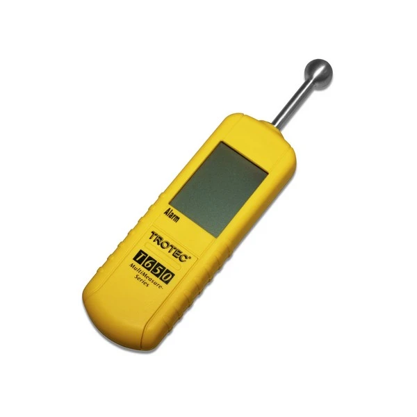 Een gevoelige meter voor het bepalen van een vochtpercentage in hout, bouwsteen en pleisterwerk.